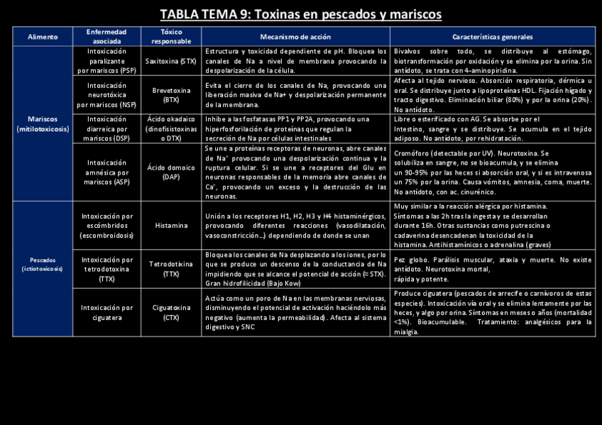 He publicado nuevos apuntes de 3º Toxicología Alimentaria: Tablas resumen Toxi T(9-18)