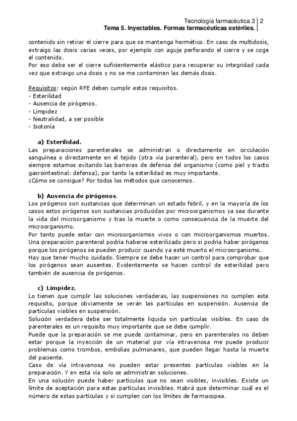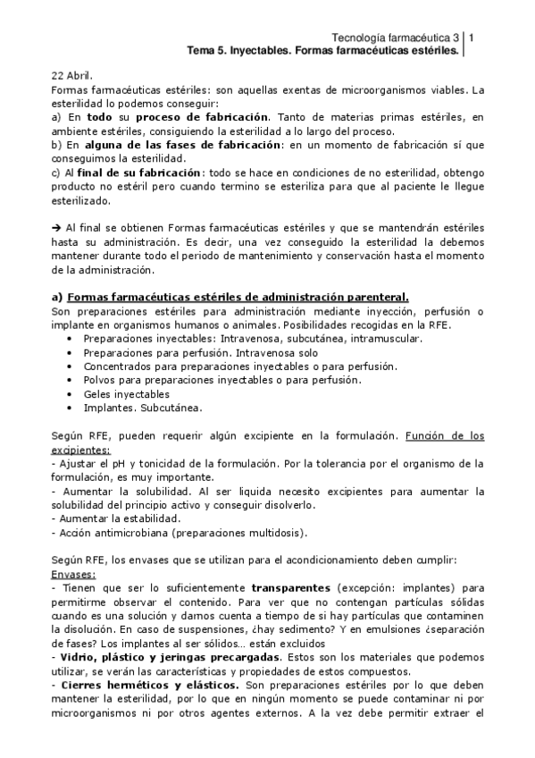 He publicado nuevos apuntes de 4º Tecnología Farmacéutica III: TFIII_Inyectables_Tema 1.pdf