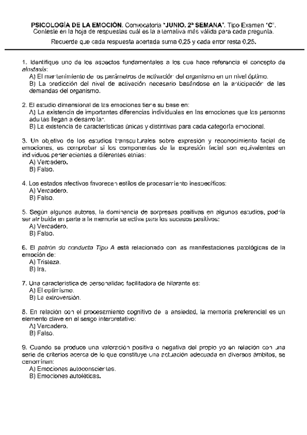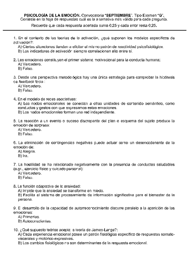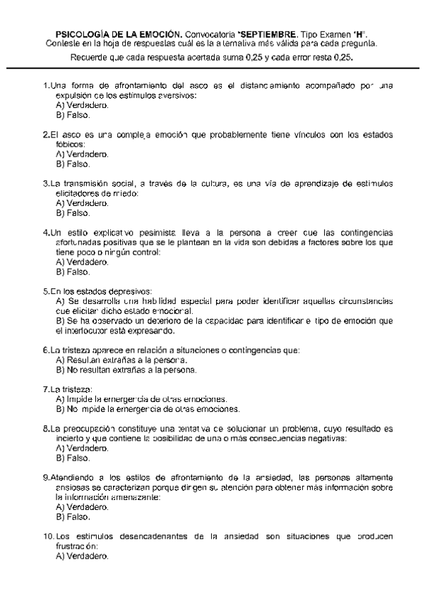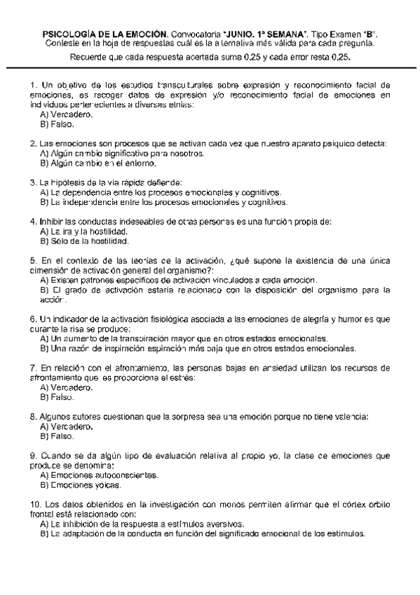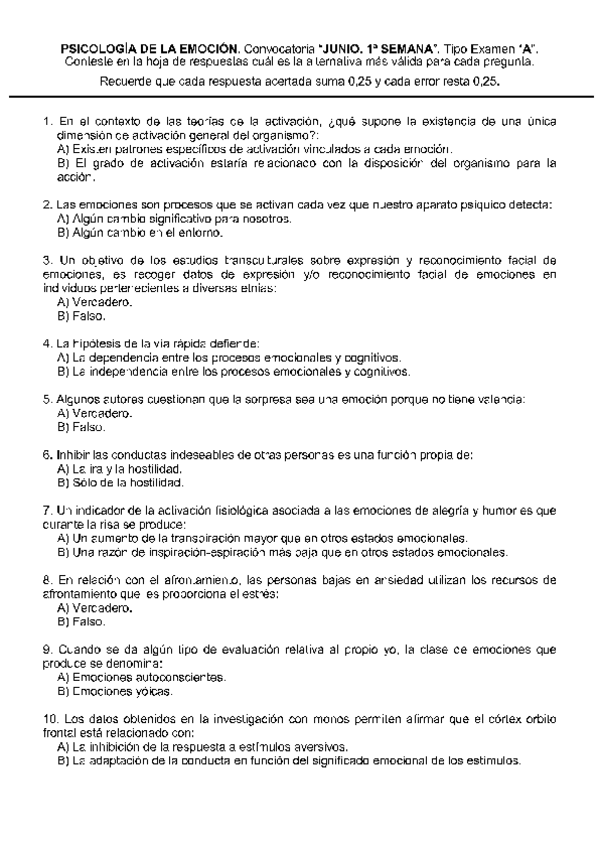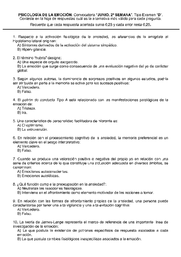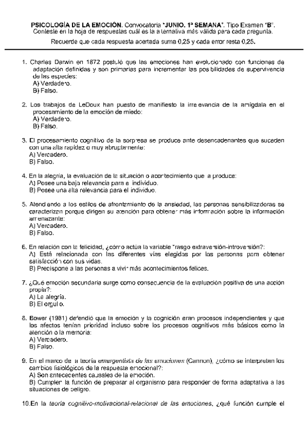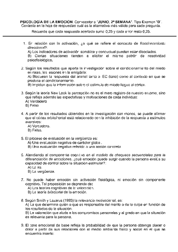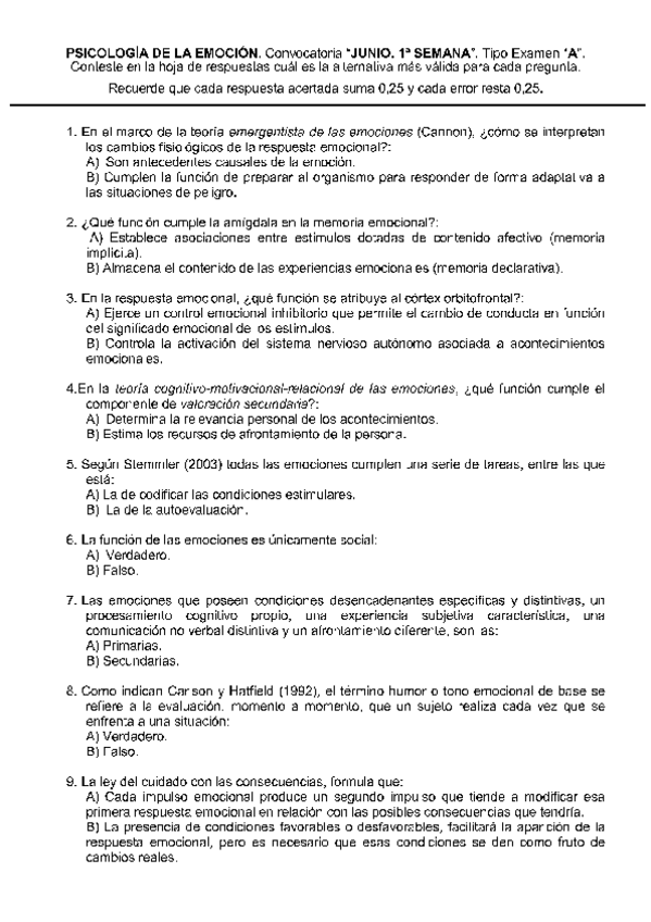 He publicado nuevos examenes de 1º Psicología de la Emoción: exámenes emoción (2parte)