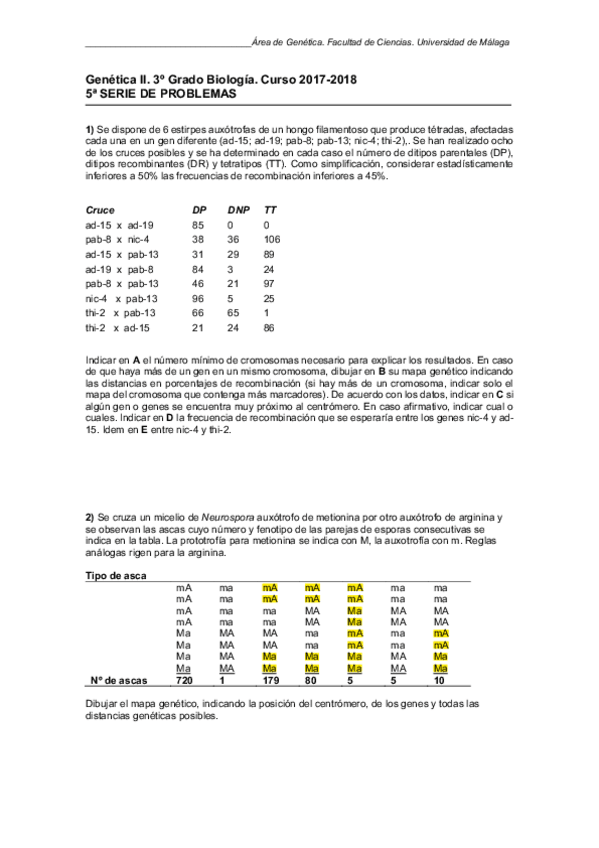 He publicado nuevos ejercicios de 3º Genética II: Series 17/18 - GEN II