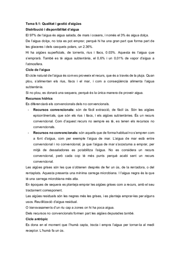 He publicado nuevos apuntes de 5º Sanitat i Gestió Ambientals: Tema 9.1: qualitat i gestió d'aigues.pdf