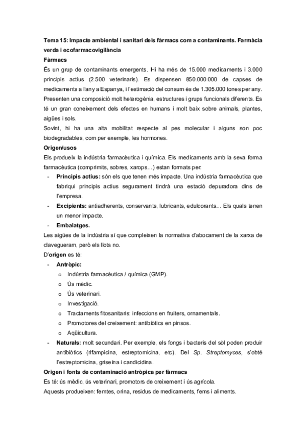 He publicado nuevos apuntes de 5º Sanitat i Gestió Ambientals: Tema 15 Farmàcia verda