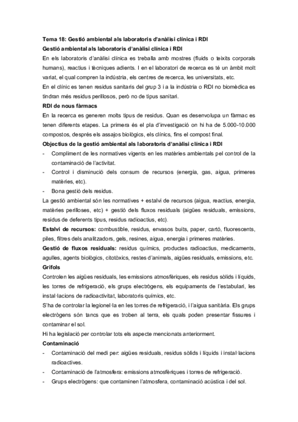 He publicado nuevos apuntes de 5º Sanitat i Gestió Ambientals: Tema-18-Gestio-ambiental-als-laboratoris-danalisi-clinica-i-RDI.pdf