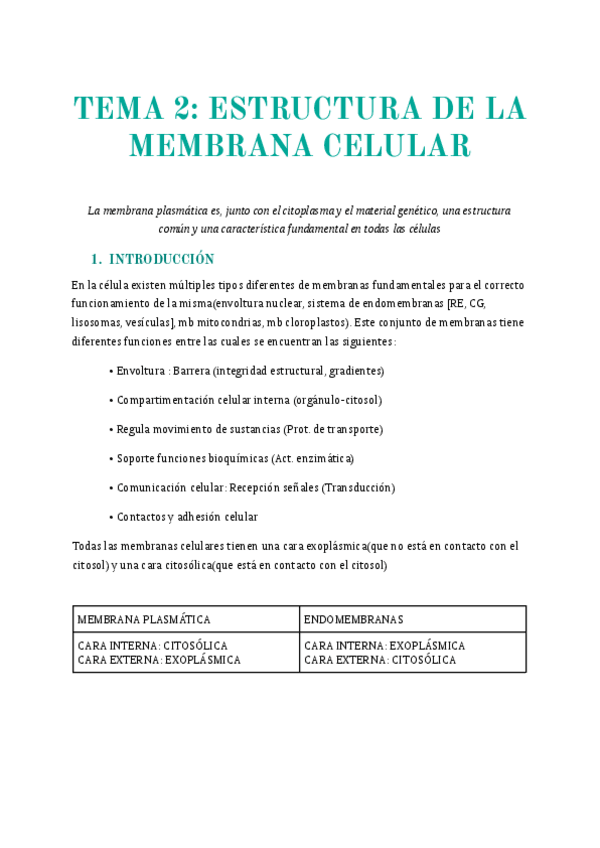 He publicado nuevos apuntes de 1º Biología Celular e Histología: Estructura de las membranas celulares