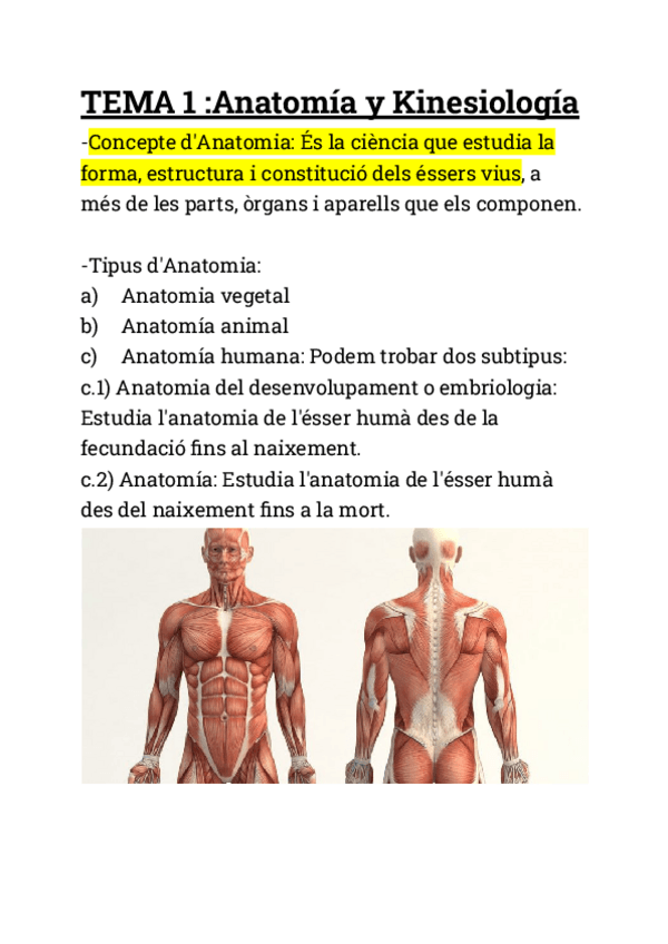 RESUMEN TEMA 1: Conceptos ,Posiciones Anatómicos,Terminos de movimiento...