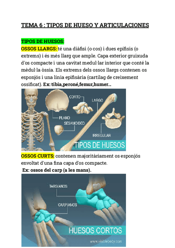 RESUMEN TEMA 6: Huesos,Articulaciones,Características,Funciones...