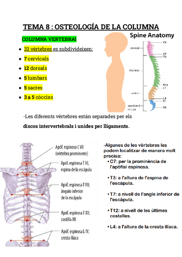 RESUMEN TEMA 8: Columna Vertebral,Tipos ,Características...