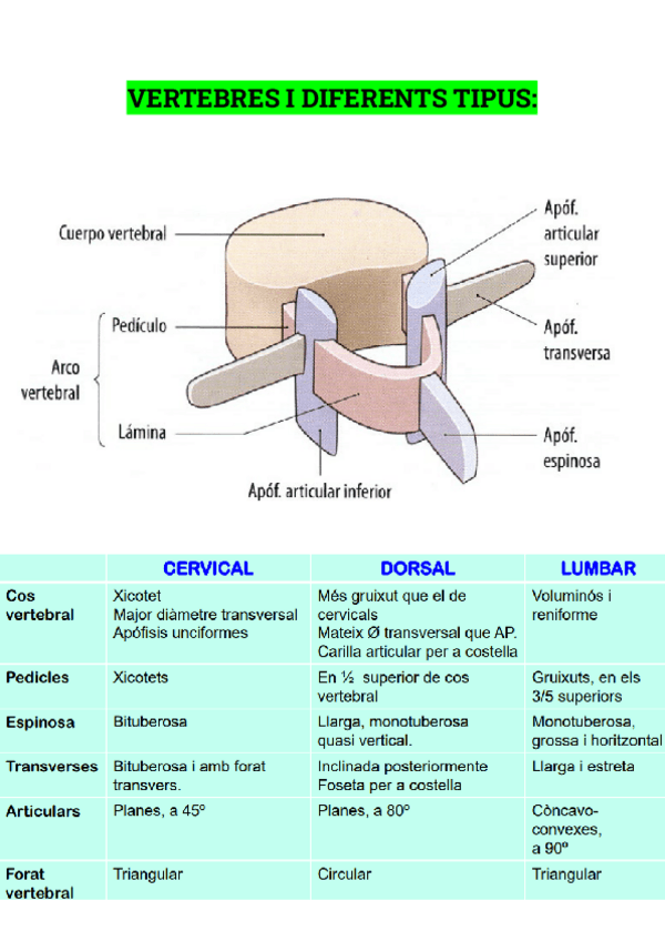 RESUMEN TEMA 9: Vertebras ,Tipos ,Características,Funciones...