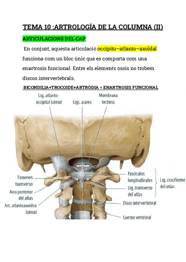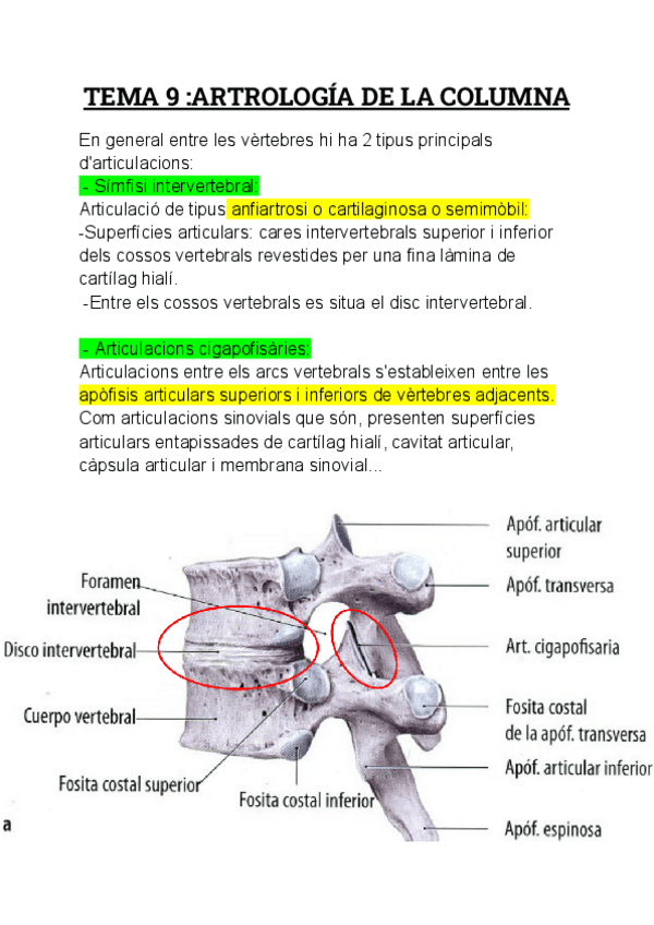 RESUMEN TEMA 10: Artrologia de la Columna ,Características,Funciones...