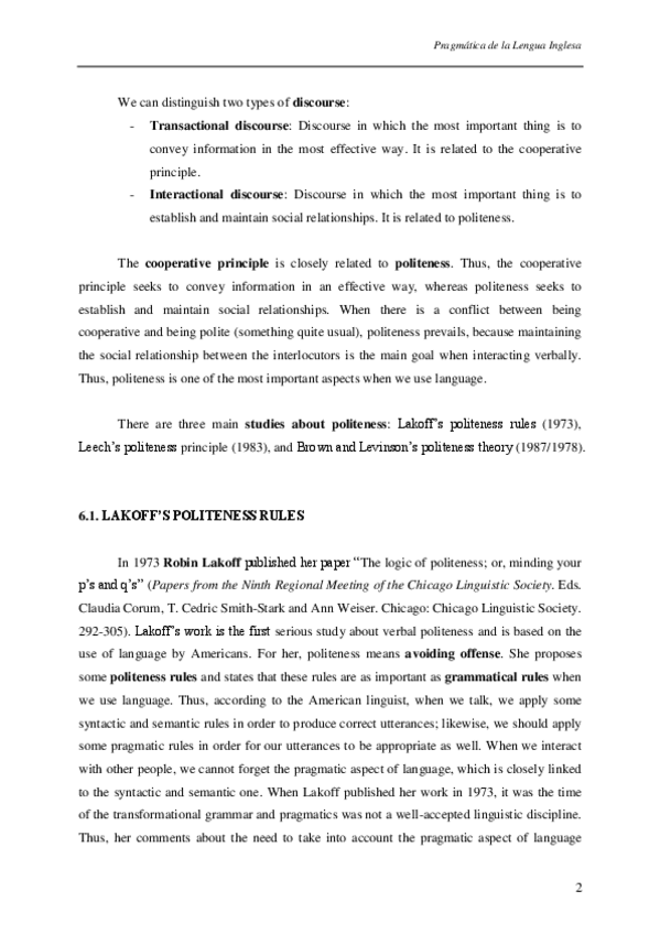 He publicado nuevos apuntes de 4º Pragmática de la Lengua Inglesa: Brown and Levinson's Politeness Theory.pdf