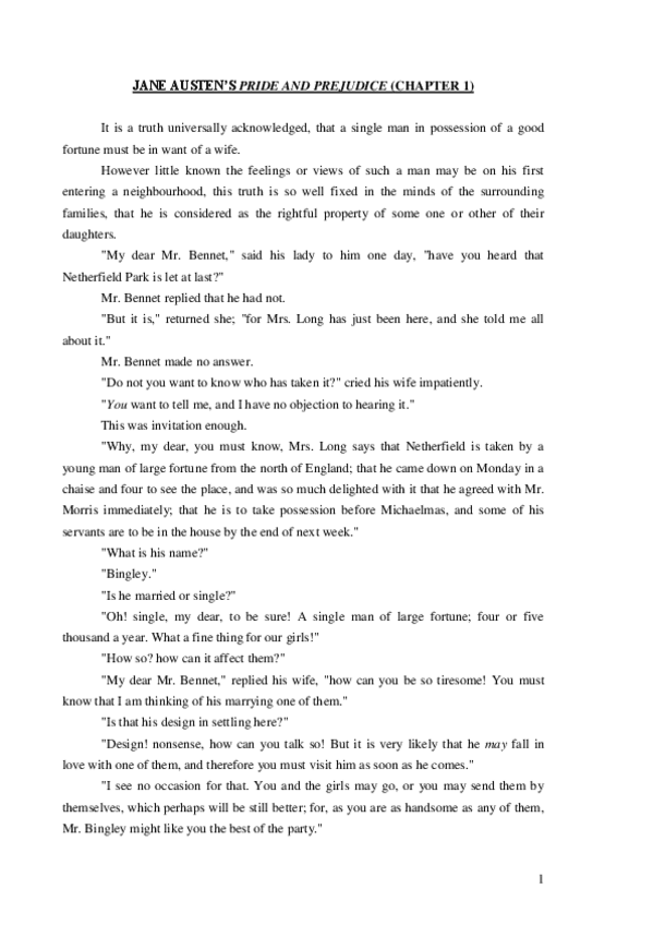 He publicado nuevos apuntes de 4º Pragmática de la Lengua Inglesa: Pride and Prejudice (chapter 1).pdf