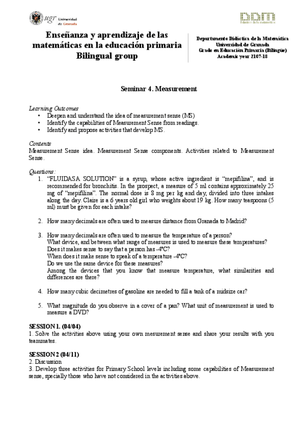 He publicado nuevos trabajos de 2º Enseñanza y aprendizaje de las Matemáticas en la Educación Primaria: Seminar 1 - Questions & Answers.pdf