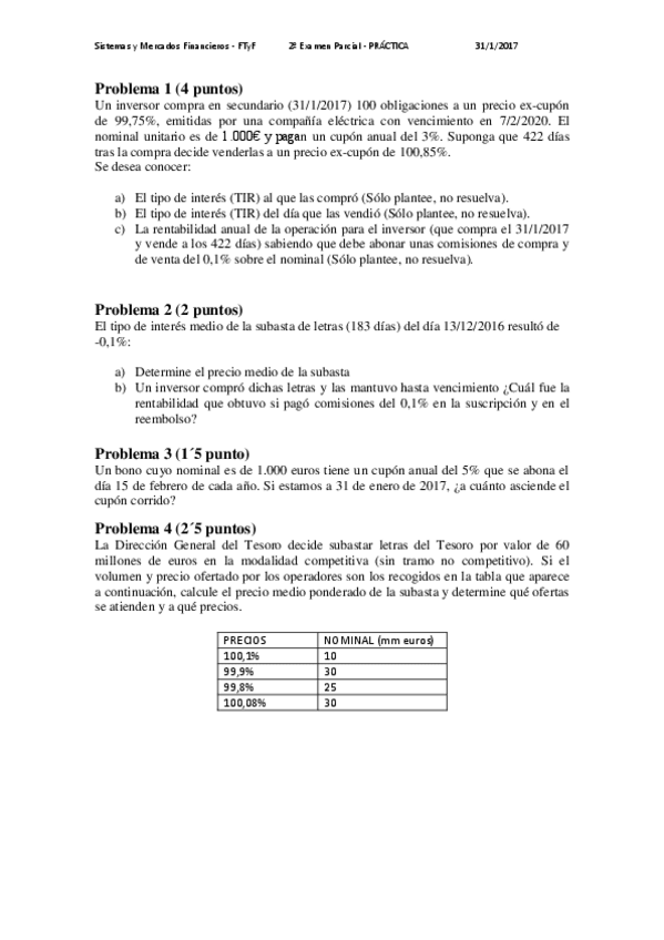 He publicado nuevos apuntes de 2º Sistemas y Mercados Financieros: Exámenes resueltos