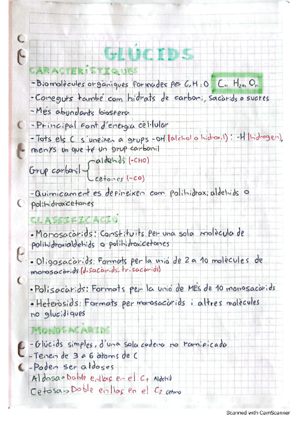 Apunts sencers de Glúcids, lípids i proteïnes. No us deixeu enganyar per la lletra, apunts molt complets amb els que vaig treure un 10 a l'examen. TOT EN CATALÀ