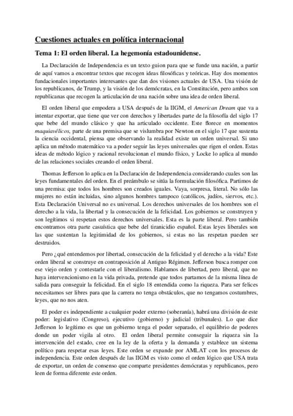 He publicado nuevos apuntes de 3º CUESTIONES ACTUALES DE LA POLITICA INTERNACIONAL: Temario completo