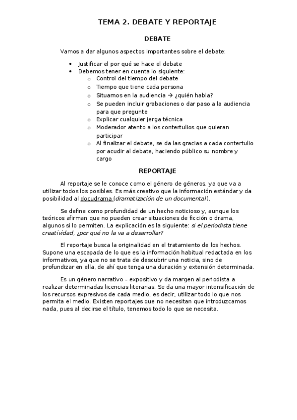 He publicado nuevos apuntes de 2º Teoría y Técnicas Audiovisuales Aplicadas Al Periodismo: Tema 3. Debate y reportaje.docx