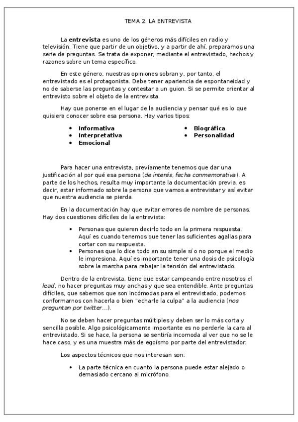 He publicado nuevos apuntes de 2º Teoría y Técnicas Audiovisuales Aplicadas Al Periodismo: Tema 2. La entrevista.docx