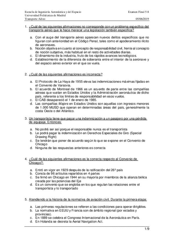 He publicado nuevos apuntes de 2º Transporte Aéreo: Examen Final Ordinario 2019