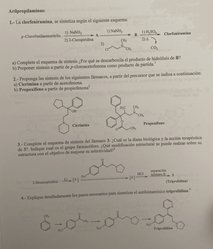 He publicado nuevos apuntes de 4º Química Farmacéutica II: ejercicios-derivados-quinolina.pdf