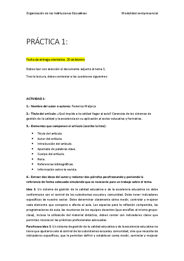 He publicado nuevos trabajos de 1º ORGANIZACIÓN DE LAS INSTITUCIONES EDUCATIVAS: Actividades y trabajo