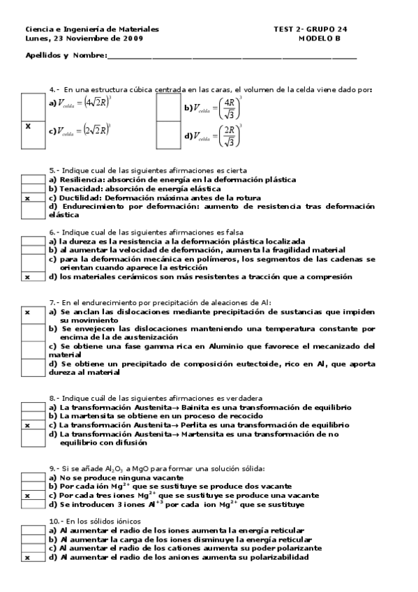 He publicado nuevos examenes de 2º Ciencia e Ingeniería de Materiales: 2009 Parcial 2B Test Soluciones.pdf