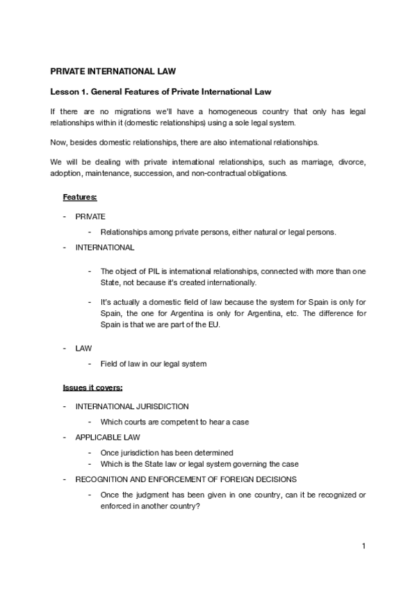 Temario entero Derecho Internacional Privado en inglés, Grupo AR (ARA)