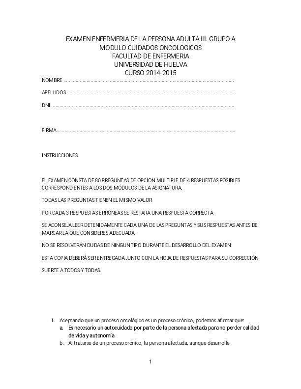 He publicado nuevos examenes de 3º Enfermería de la persona adulta III: Exámenes oncología