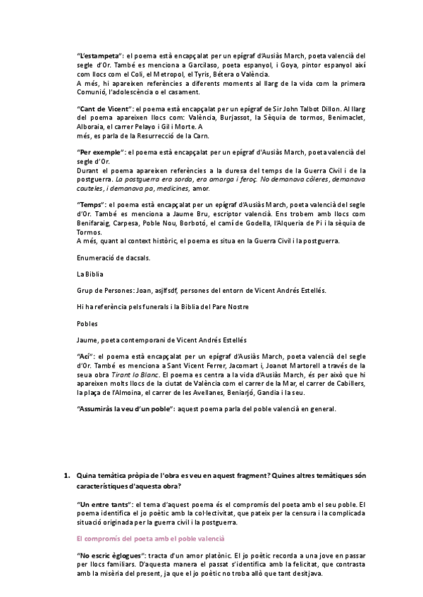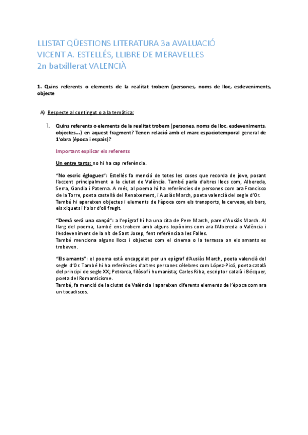 Preguntas para selectividad sobre Llibre de meravelles de Vicent Andrés Estellés
