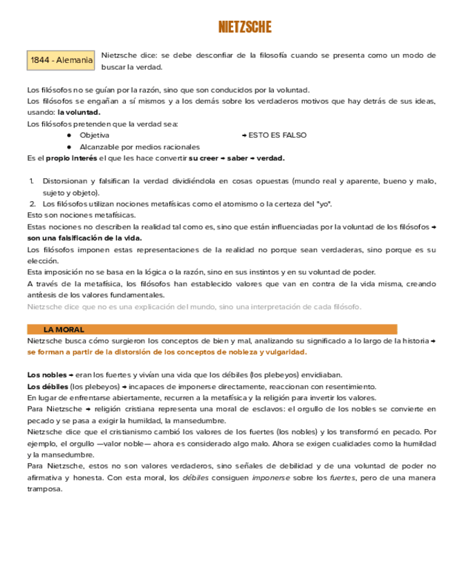 Apuntes de Nietzshe de 2º bachillerato para la PAU: moral, la muerte de Dios, el eterno retorno y el superhombre