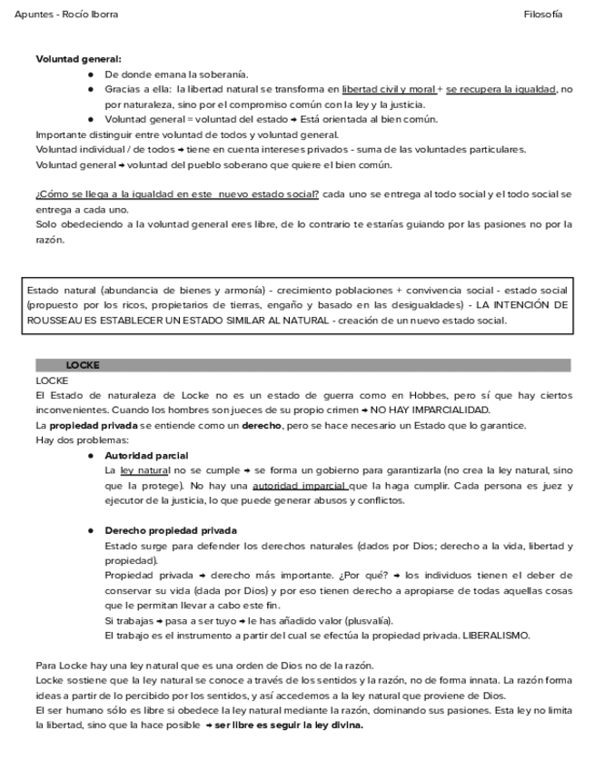Apuntes de teorías contractualistas de Hobbes, Rousseau y Locke.