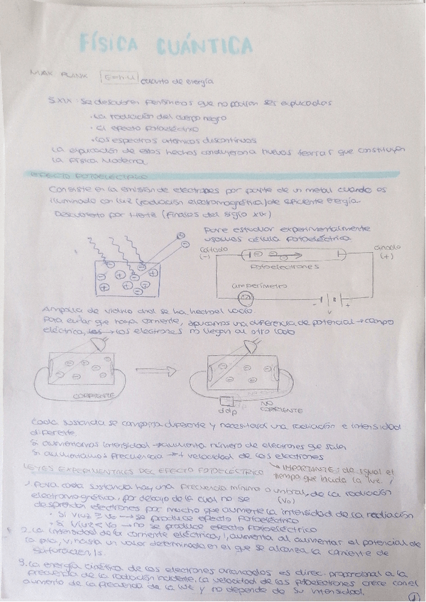 Física cuántica de 2º de bachillerato con ejercicios resueltos. Se explica el efecto fotoeléctrico, la hipótesis de Broglie, espectros atómicos y el principio de indeterminación de Heisenberg