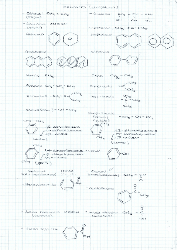 Todas las excepciones de la formulación orgánica (primera página) y tabla resumen (Familia-Grupo funcional -Esquema del nombre - Ejemplo) (segunda página)
