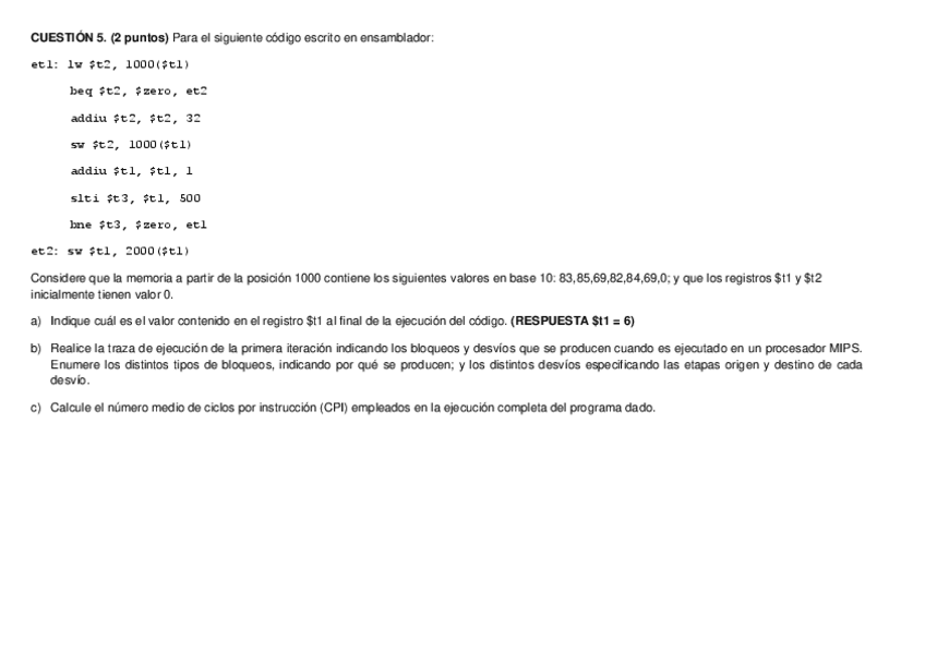 He publicado nuevos examenes de 2º Arquitectura de Computadores: Solucion Cuestion2-prueba evaluacion continua 2013-2014 (todos los grupos) CORREGIDA.pdf