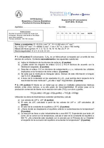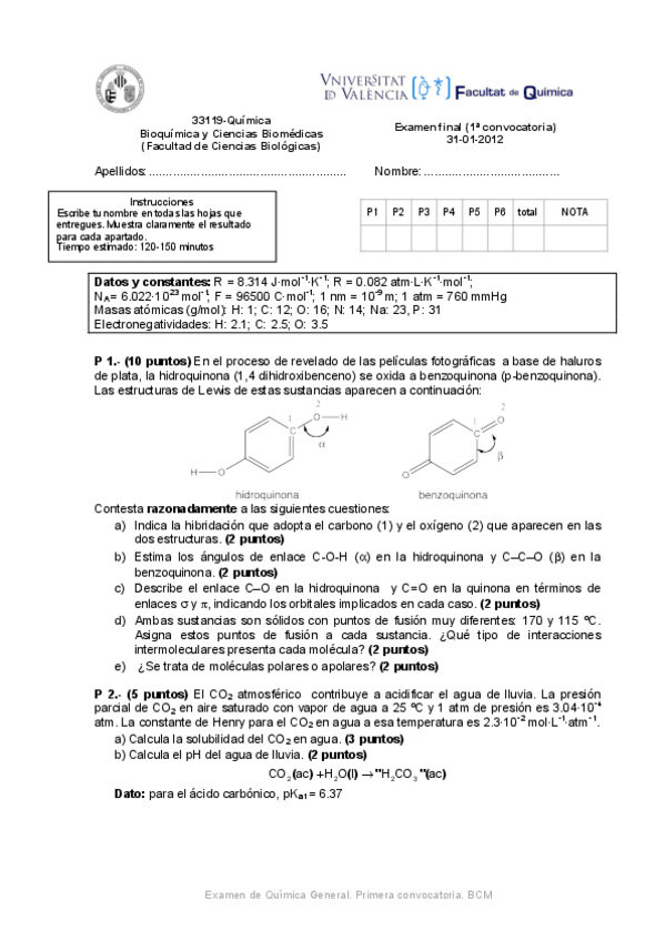 He publicado nuevos examenes de 1º Química: Exámenes 2011/2012/2013