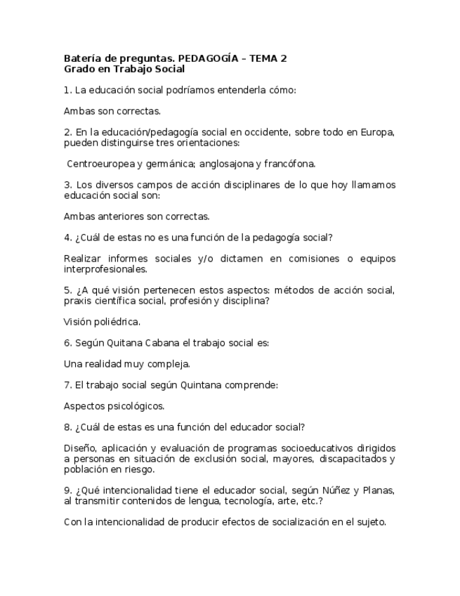 He publicado nuevos examenes de 1º Introducción a la Pedagogía Social: Batería Preguntas Examen Resuelto