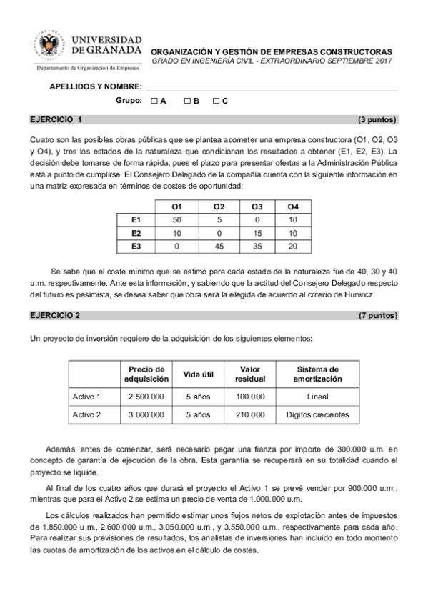 He publicado nuevos examenes de 1º Organización y Gestión de Empresas de Ingeniería: OGEC-PRACTICA JUNIO 2017-Soluciones.pdf