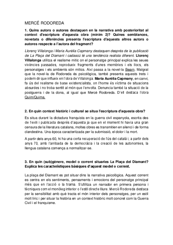 Preguntes pau sobre Mercé Rodoreda, Estellés, Fuster i Rodolf Sirera.