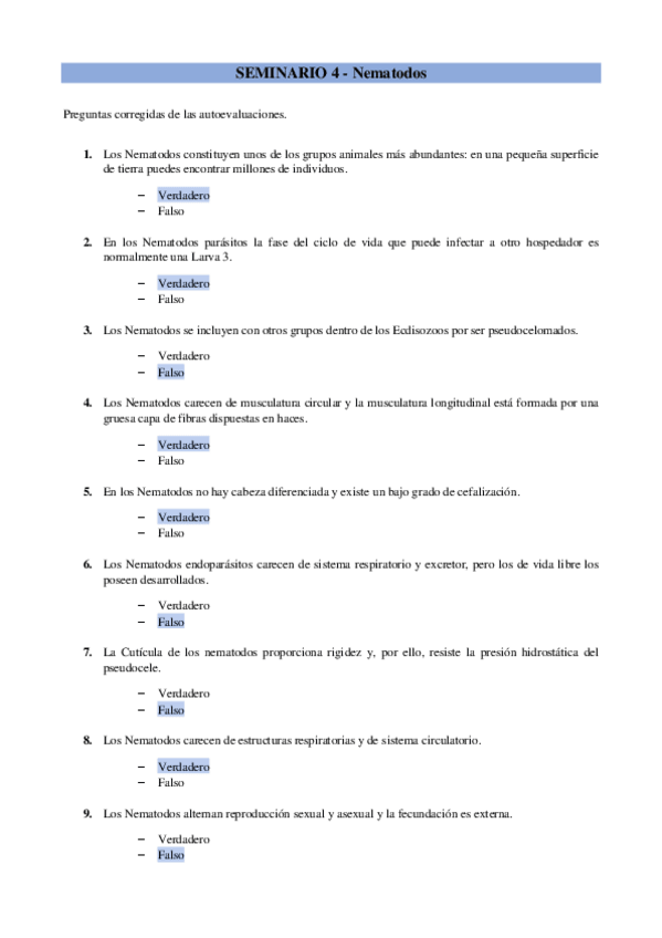 He publicado nuevos test de 1º Zoología: Autoevaluaciones Seminarios