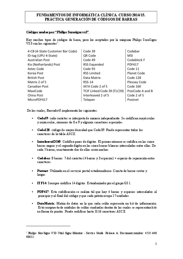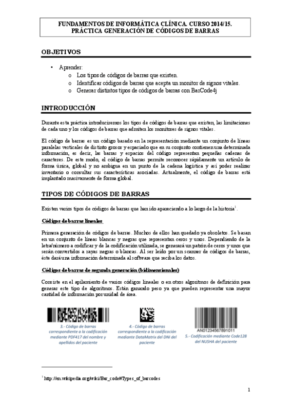 He publicado nuevos practicas de 3º Fundamentos de Informática Clínica: Práctica 4 Códigos de barras.pdf