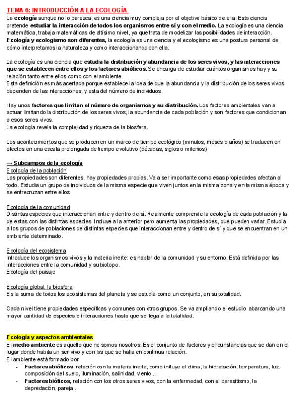 He publicado nuevos apuntes de 1º Biología General: Temario Ecología 2 cuatrimestre