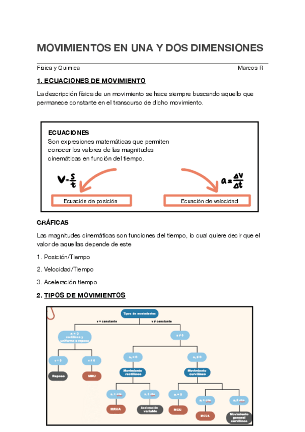Todo sobre los movimientos en una y dos dimensiones, con imágenes explicativas, gráficas, ejemplos, ejercicios y ejercicios resueltos