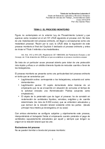He publicado nuevos apuntes de 4º Tutela de los derechos laborales I: Proceso Monitorio Tema y Plantilla