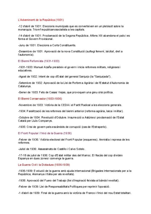Eix cronològic de la Segona República i la Guerra Civil, espere que vos ajude, sort en la PAU