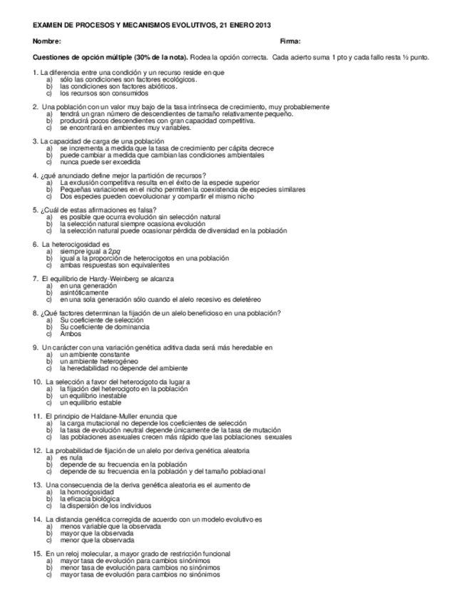 He publicado nuevos examenes de 2º Procesos y Mecanismos Evolutivos: EXAMEN-PME-I.pdf