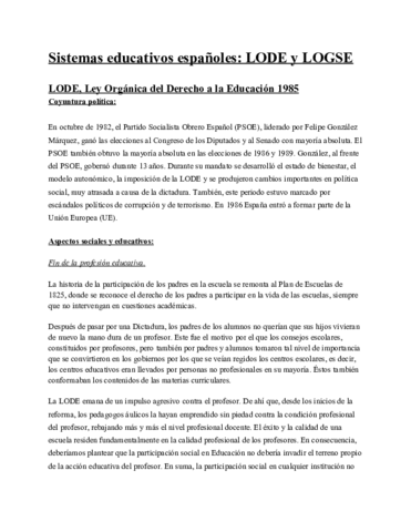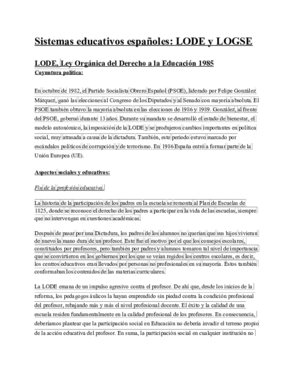 Sistemas Educativos Españoles: Lode y Logse