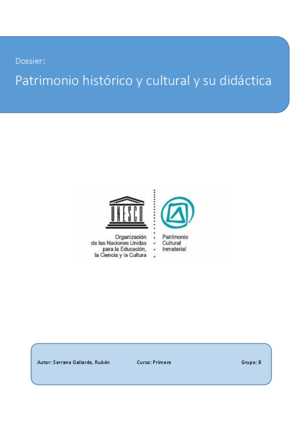 He publicado nuevos apuntes de 1º El Patrimonio Histórico y Cultural y Su Didáctica: Dossier