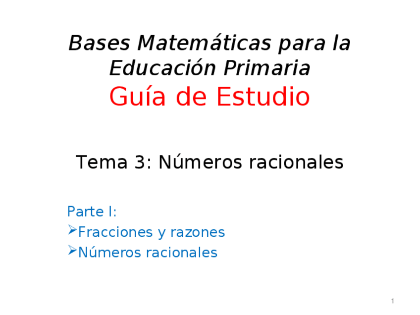 He publicado nuevos apuntes de 1º Bases Matemáticas Para la Educación Primaria: Tema 3_Racionales.ppt