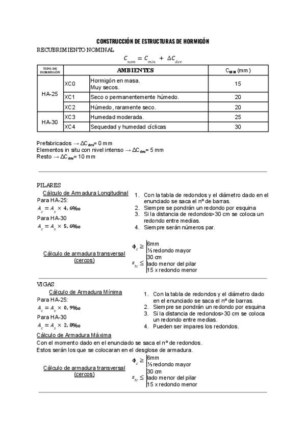 He publicado nuevos apuntes de 2º Construcción de Estructuras de Hormigón: Chuletario