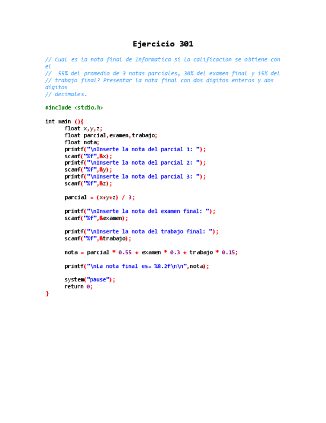 ejercicios
