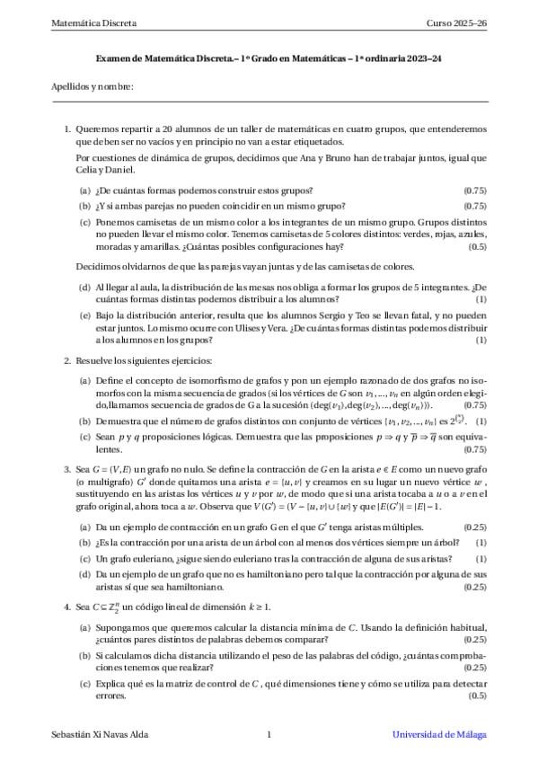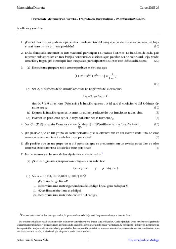 He publicado nuevos examenes de 1º Matemática Discreta: 1a-Ordinaria-2024-2025.pdf